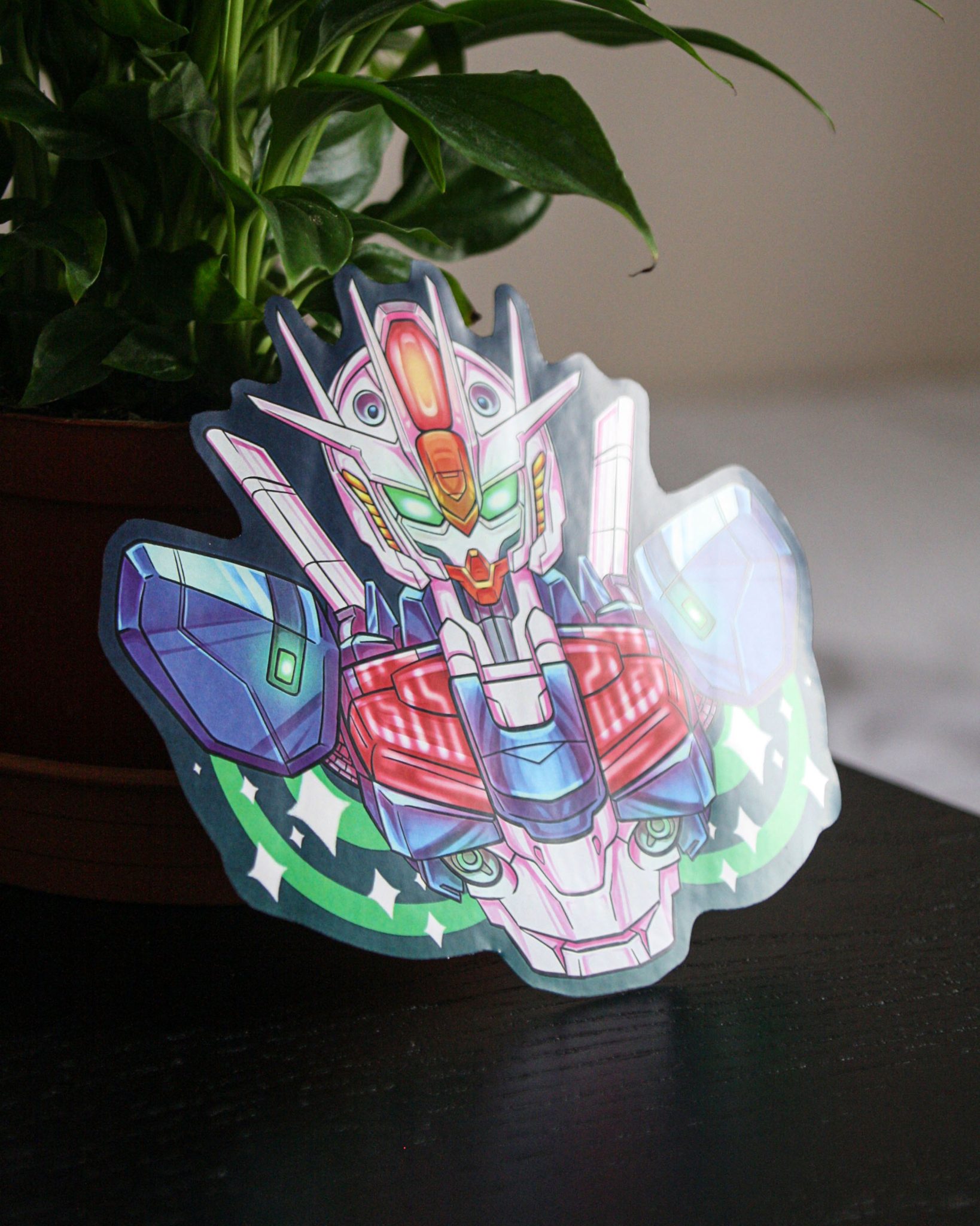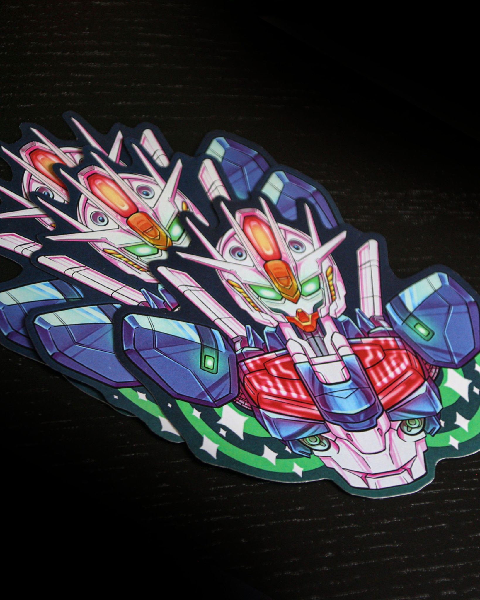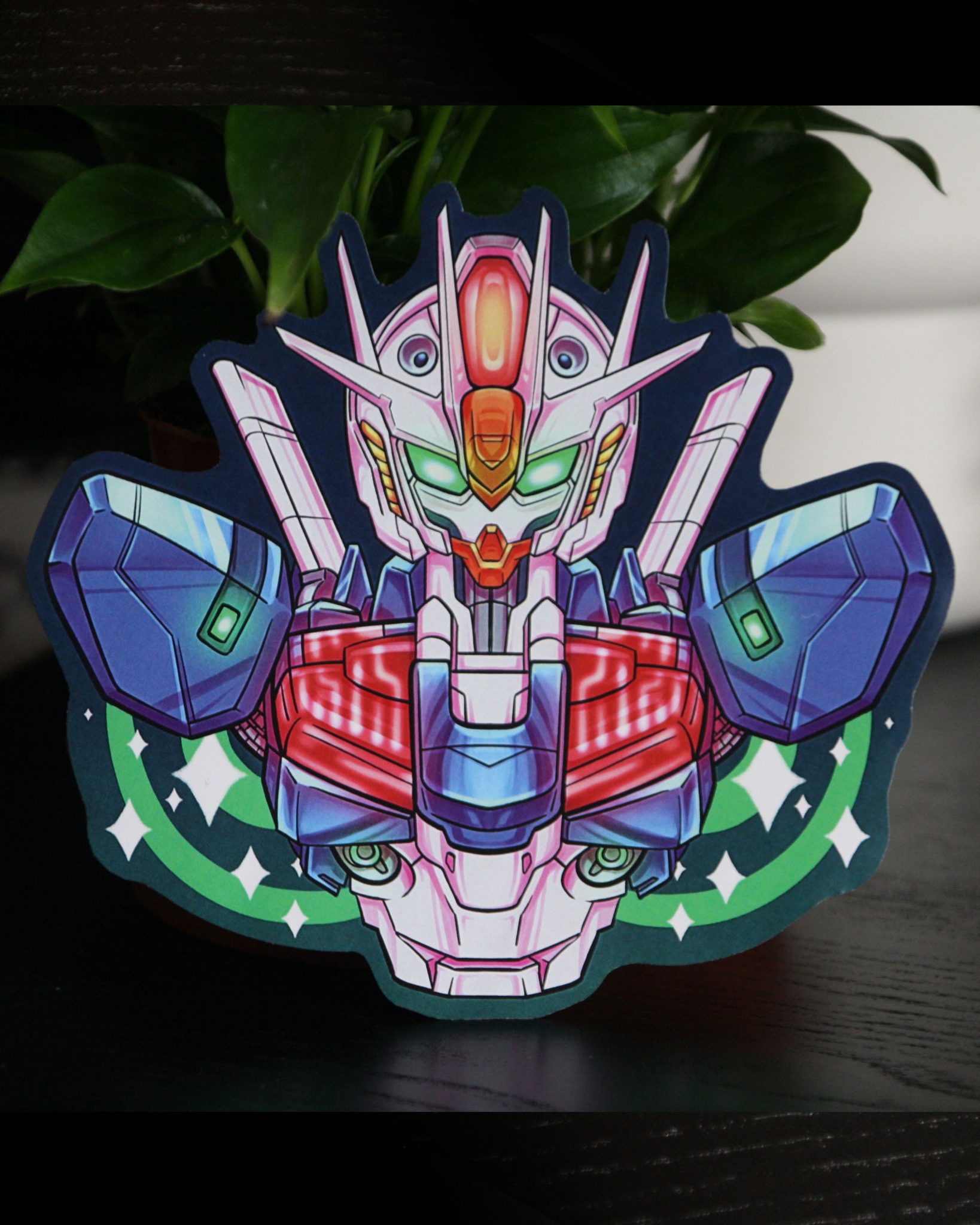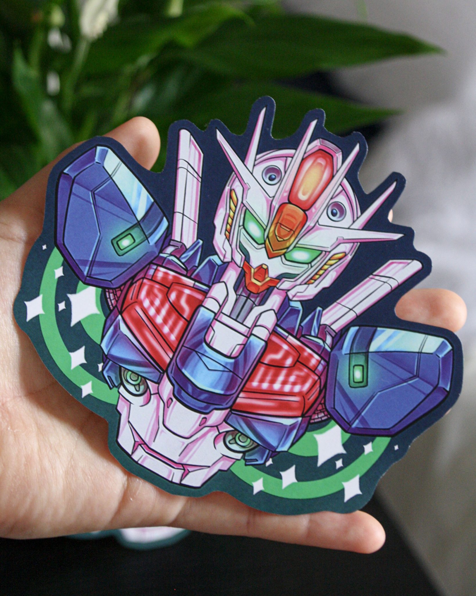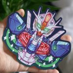 Sticker inspired by Gundam series. Its size is 12cm x 14cm approximately. Its material is paper.