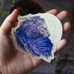 Sticker inspired by Elden Ring videogame. Its size is 9,5cm x 9cm approximately. Its material is paper.