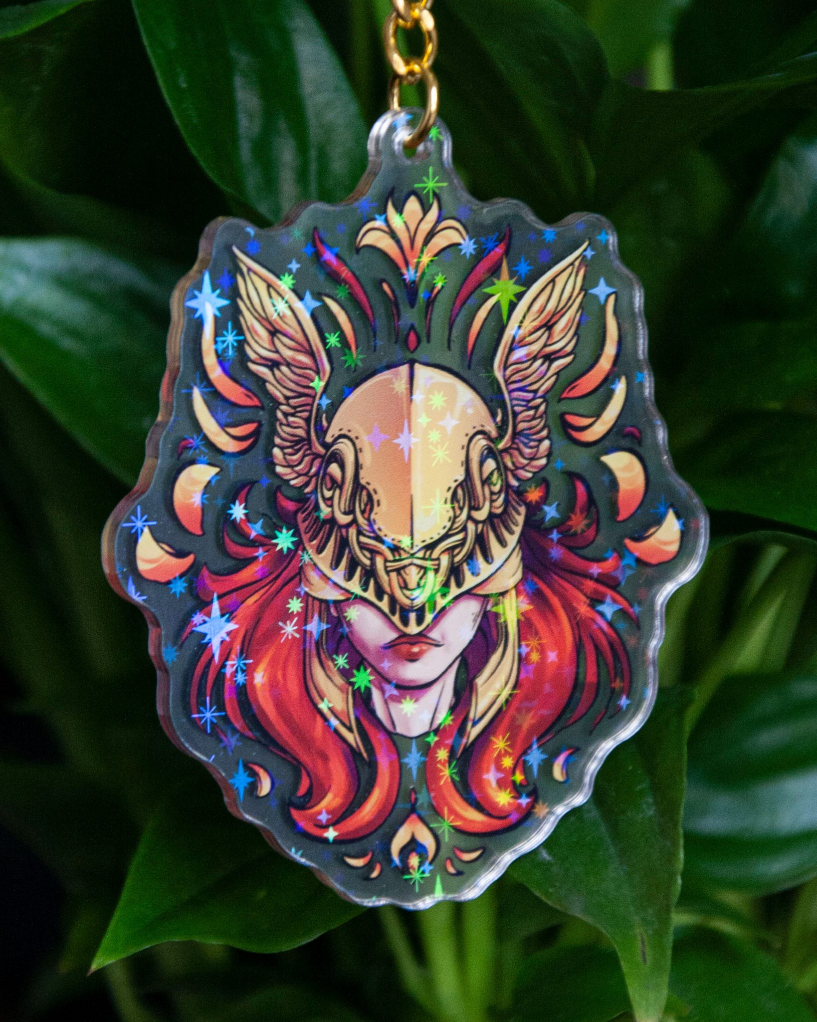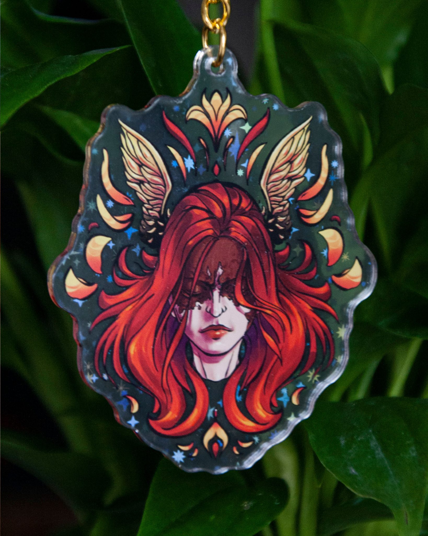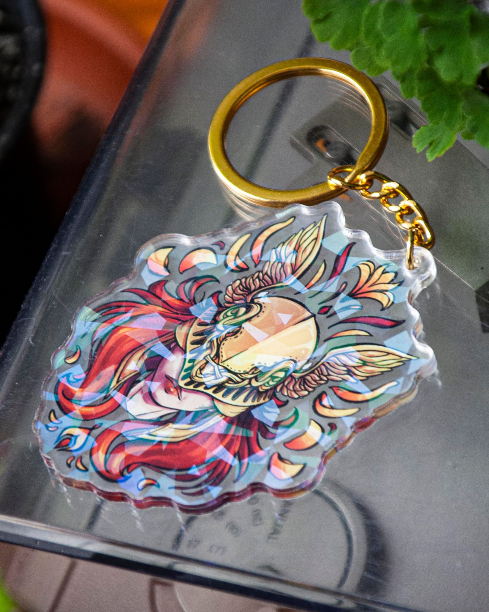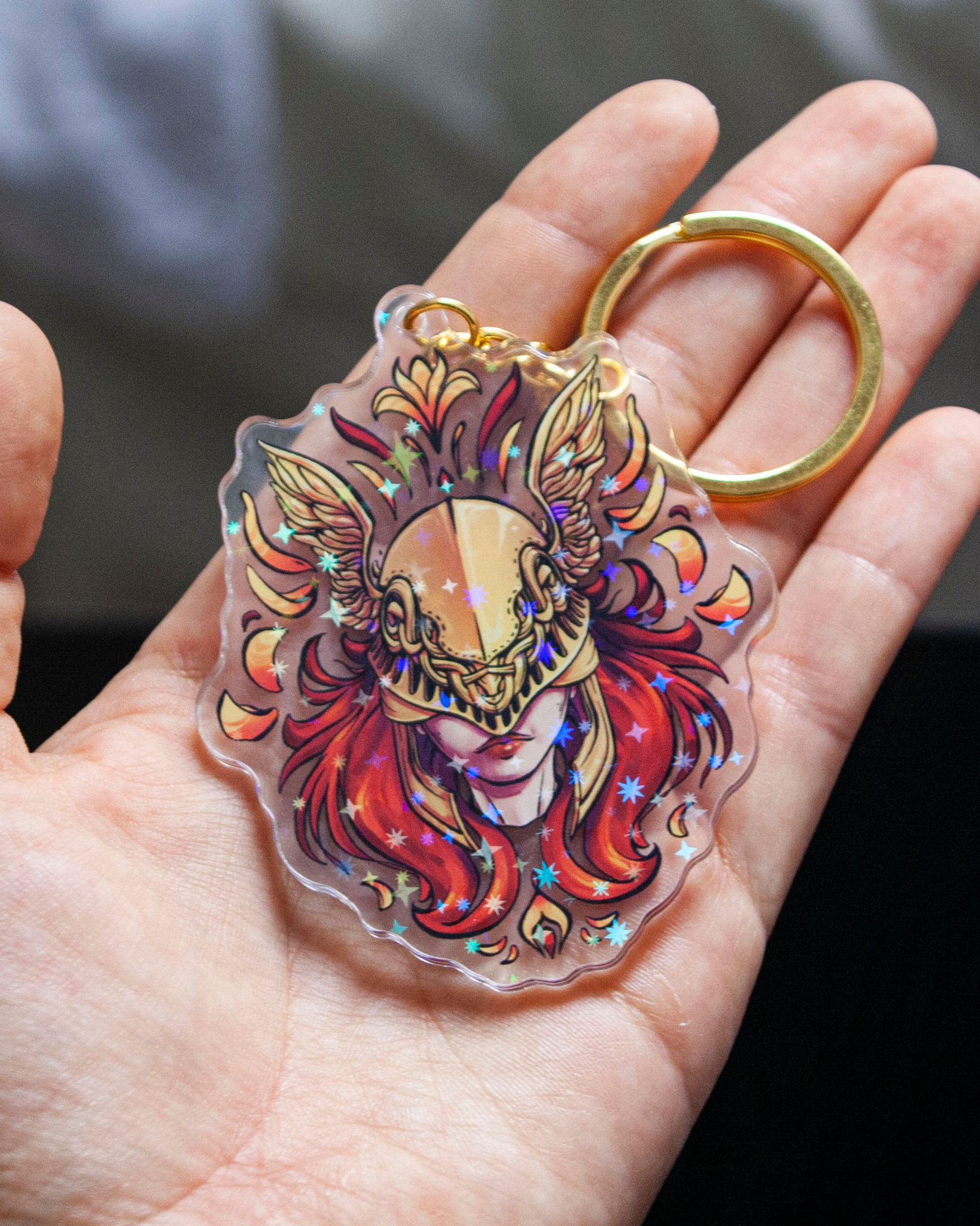 Keychain inspired by Elden Ring videogame. Each side is different. The acrylic part size is 7,5cm x 6 cm approximately. Its material is acrylic with a metallic clasp.