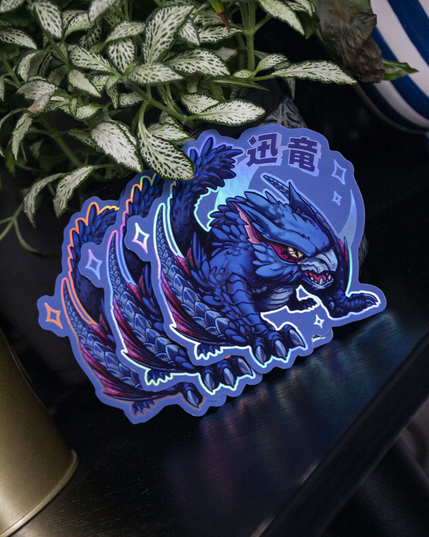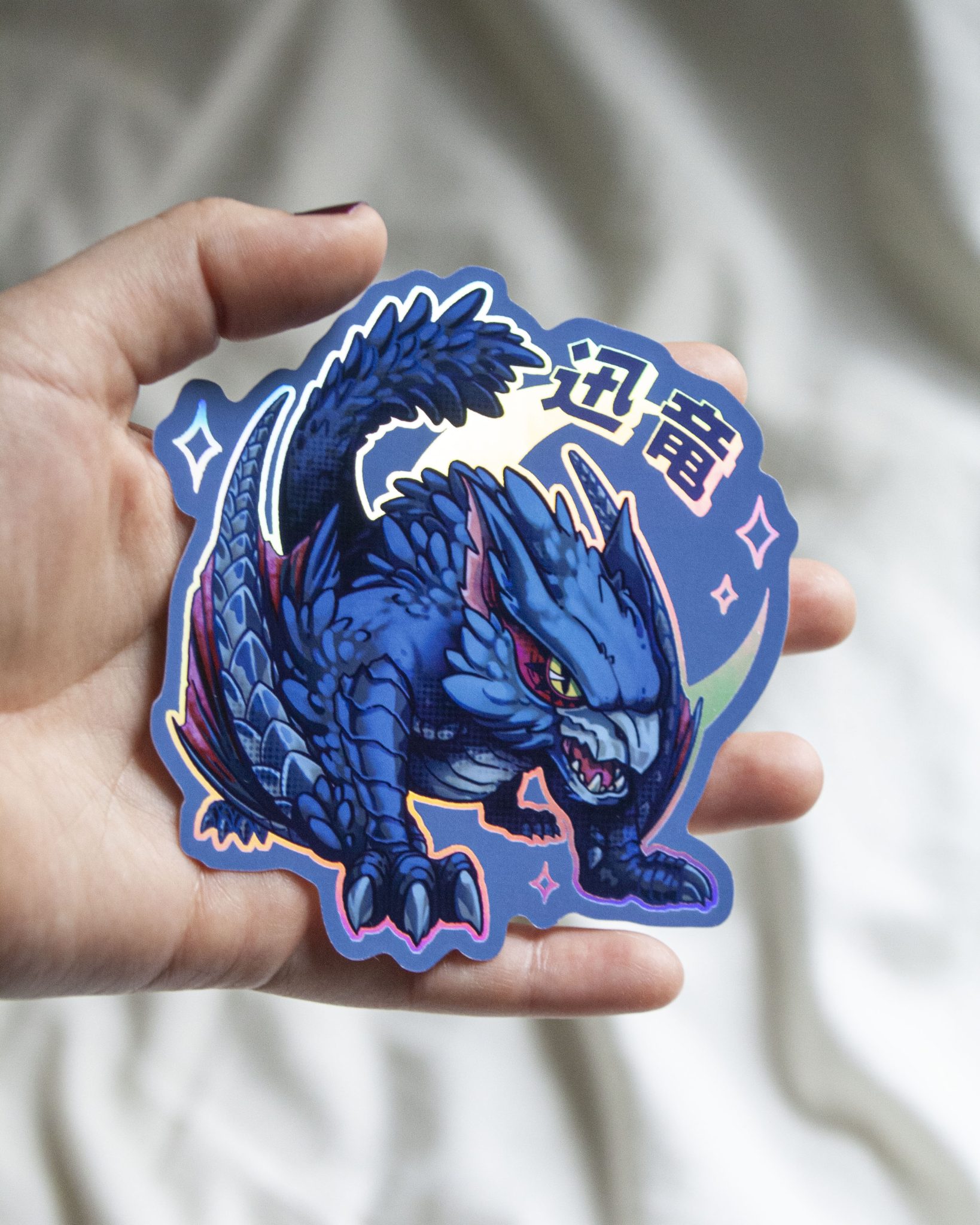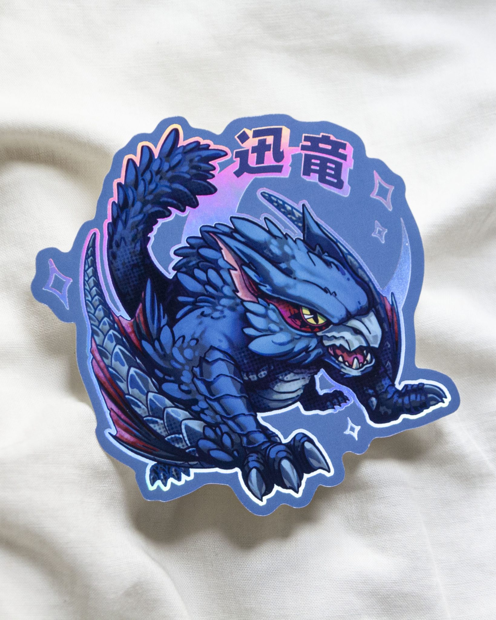 Holographic sticker inspired by MH series. Its size is 10cm x 10cm approximately (4″ x 4″). Its material is thick paper with holographic effect.