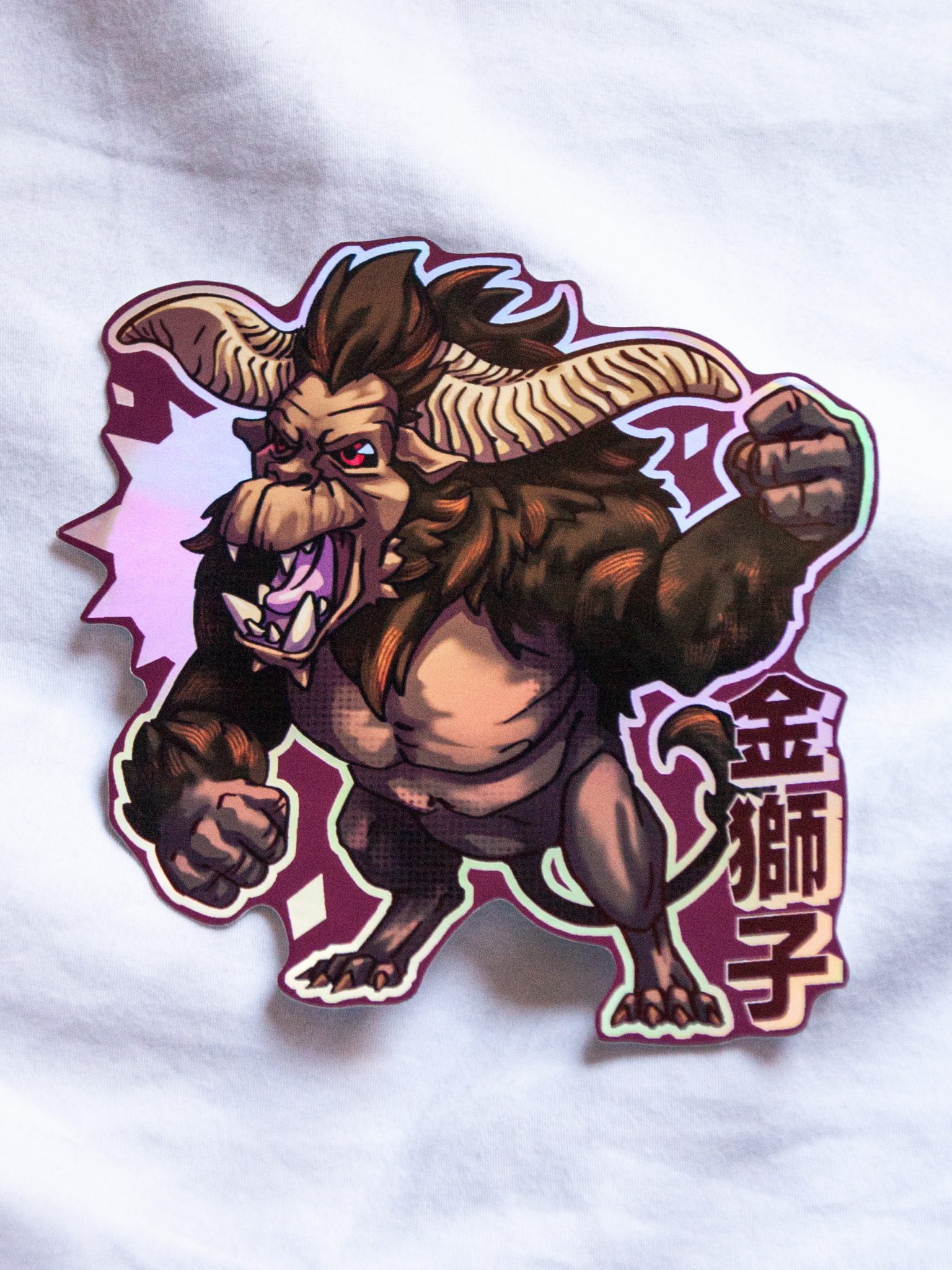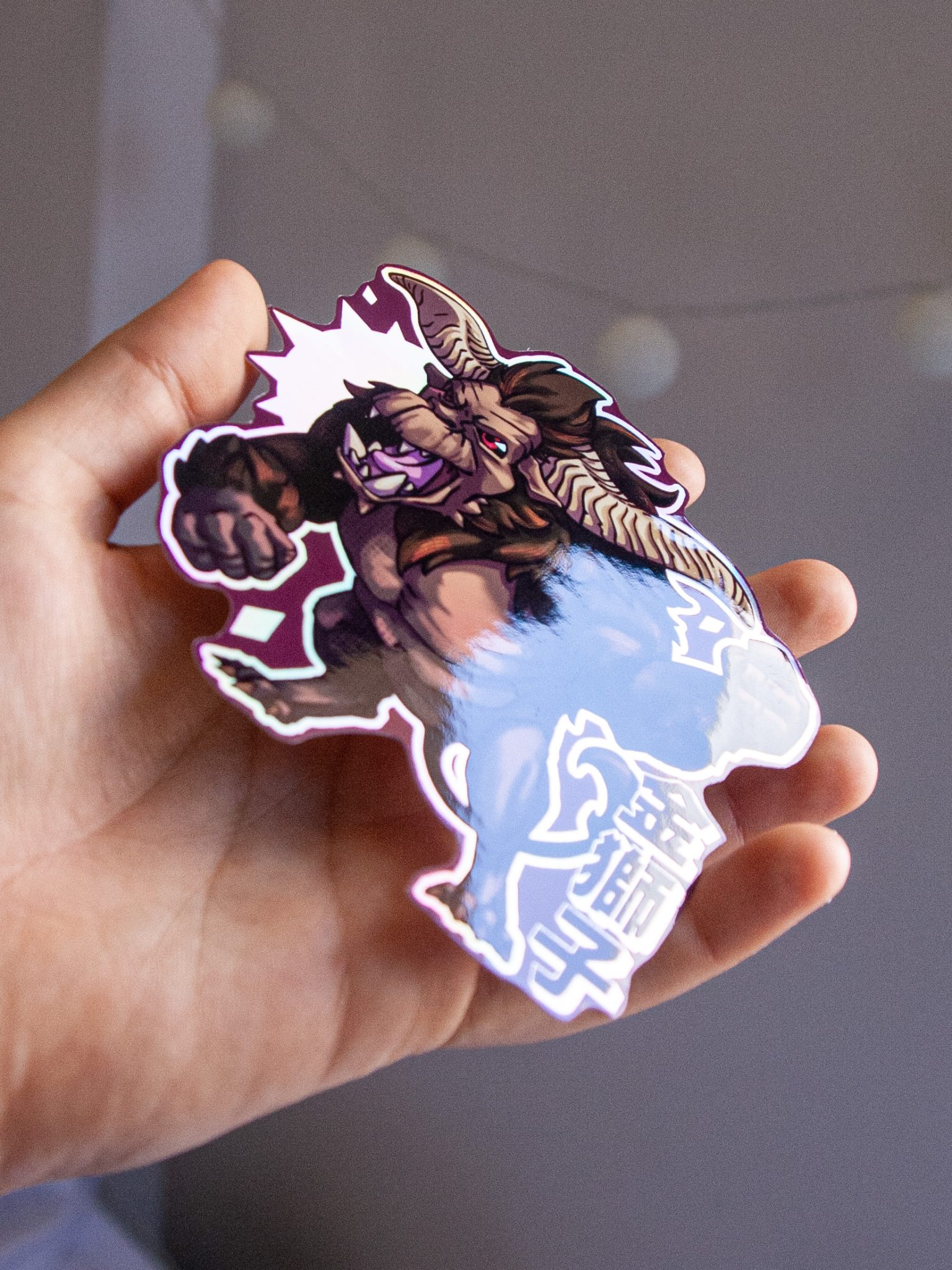 Holographic sticker inspired by MH series. Its size is 10cm x 10cm approximately (4″ x 4″). Its material is thick paper with holographic effect.